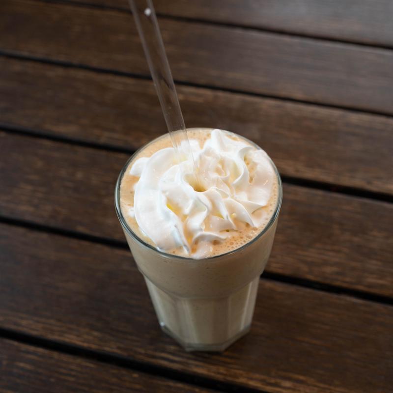 Made with classic vanilla ice cream, milk, a shot of Espresso, and a spoon of ground coffee.